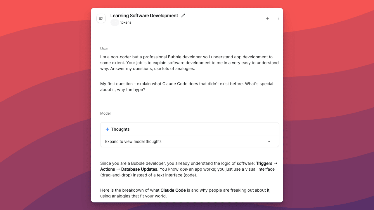 More importantly, it unlocked a new realisation: I don’t just enjoy building apps. I enjoy product managing an AI to build apps for me.